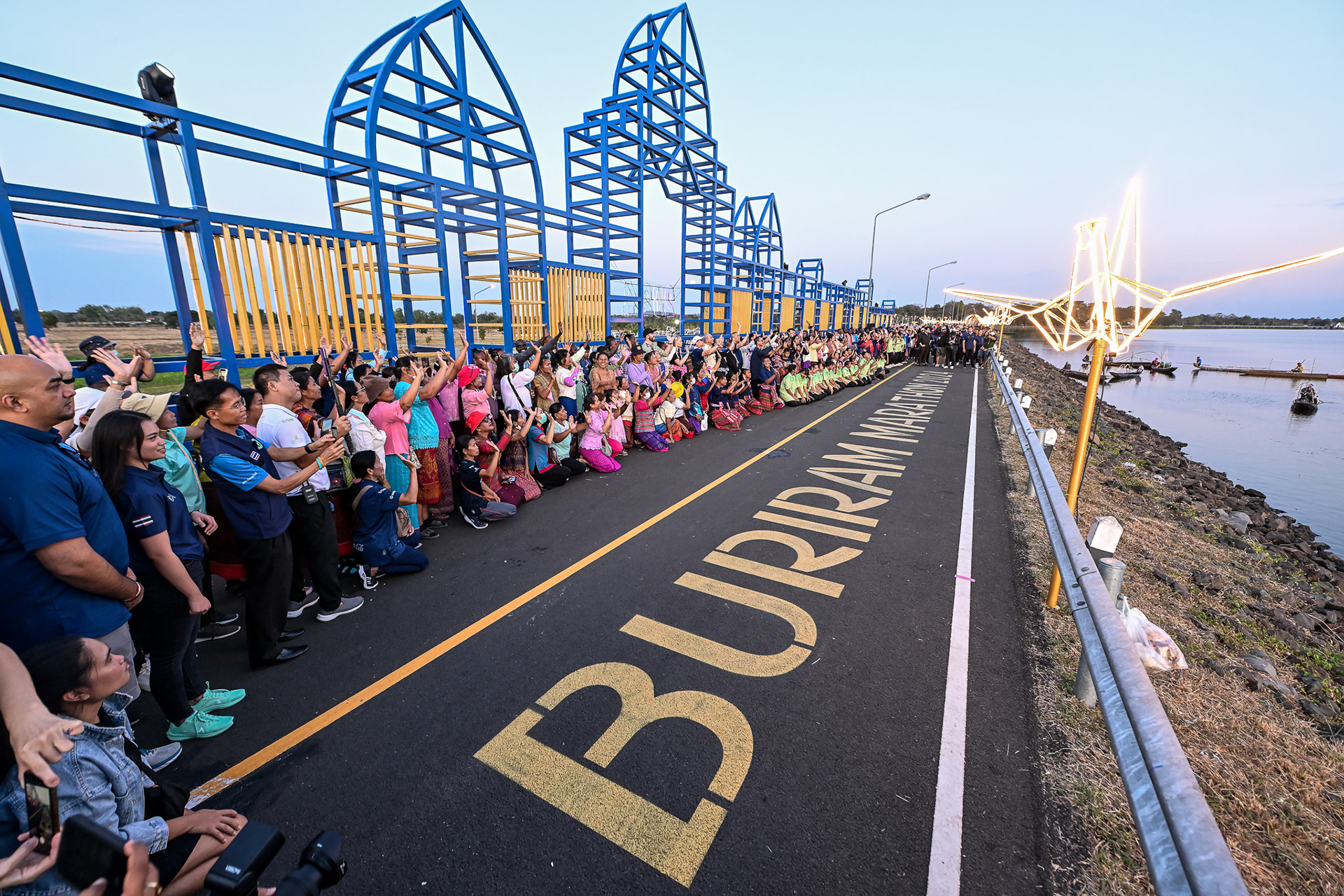 “บุรีรัมย์ มาราธอน 2024 พรีเซนเต็ด บาย น้ำแร่ธรรมชาติ ตรา ช้าง" จัดพิธีต้อนรับนักวิ่งระดับท็อปของโลกอย่างยิ่งใหญ่ บริเวณอ่างเก็บน้ำห้วยจรเข้มาก อ.มือง จ.บุรีรัมย์ แหล่งท่องเที่ยวและแลนด์มาร์คที่สำคัญ จุดชมพระอาทิตย์ขึ้น-ตก และเป็นที่อาศัยของนกกระเรียนพันธุ์ไทยหายาก โดยชาวบ้านแห่ต้อนรับและส่งกำลังใจให้นักวิ่งระดับโลกที่ร่วมงาน ตลอดเส้นทางเนืองแน่น บรรยากาศสุดอบอุ่นและประทับใจ ก่อนเปิดฉากสู่งานวิ่งมาตรฐานโลกระดับ Gold Label ระยะมาราธอน อย่างเป็นทางการปีแรก รายแรก-รายเดียวของไทยและ Gold มาราธอนแรกของโลกในรูปแบบไนท์รัน ด้านผู้ว่าฯบุรีรัมย์เผยเตรียมเลี้ยง “หมูกระทะ” นักวิ่งที่พิชิตสถิติใหม่ Beat your Buriram Marathon Personal Best หรือ NEW PB ได้สำเร็จ